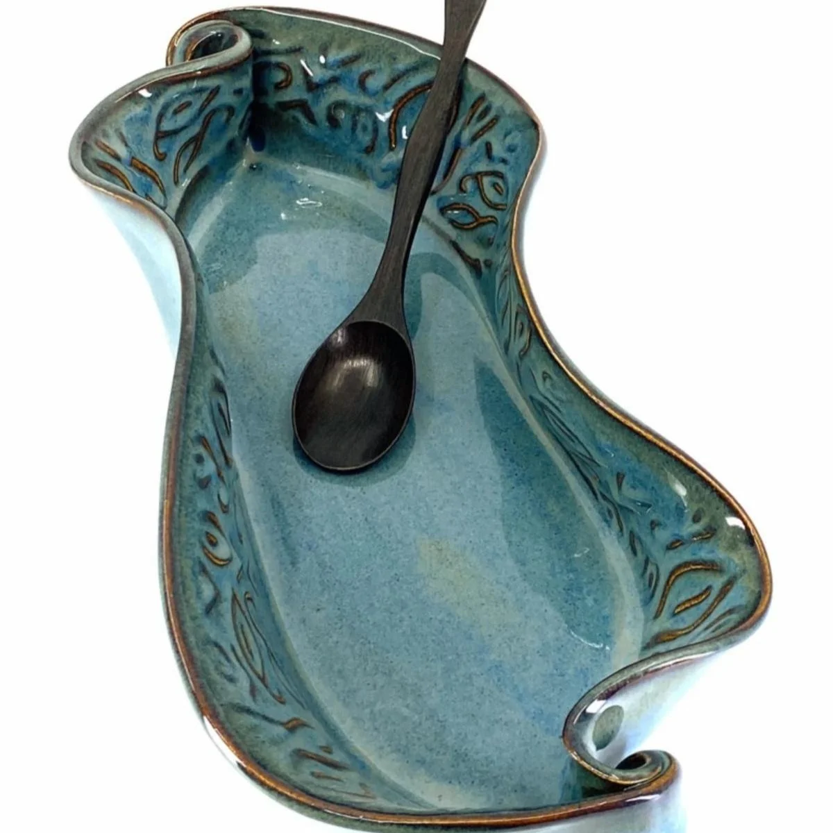 This elongated textured dish is great for serving this seasonal favorite or other veggies. Comes with a rosewood serving spoon.