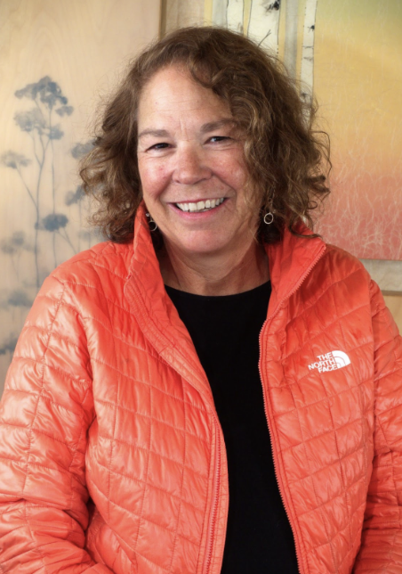 I live in Berkeley and have been exhibiting paintings at the ACCI co-op gallery and other local galleries for over 15 years. Banners on display in Berkeley come from three of my series – Whisper, Whistling Birch and Warm Breezes. To achieve the unique atmospheric effect, each multi-panel painting uses resins to separate individual layers of acrylic, oil, graphite, sumi ink, real leaves from the neighborhood, or tissue paper, providing a three-dimensional effect.