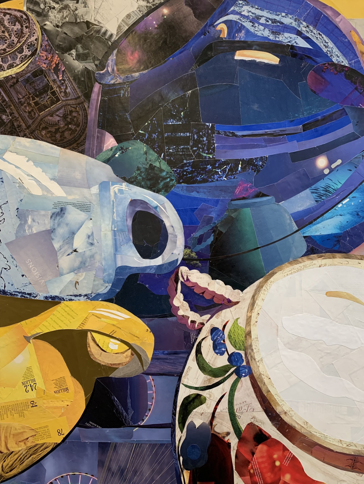 Dishes, bowls, and cups turned upside down to dry by my sink remind me of human relationships; some dishes lean on each other, some bowls are stacked, some cups are more isolated than others. This piece features a light blue 1940’s coffee mug atop a yellow cup and blue glass stacked bowls.